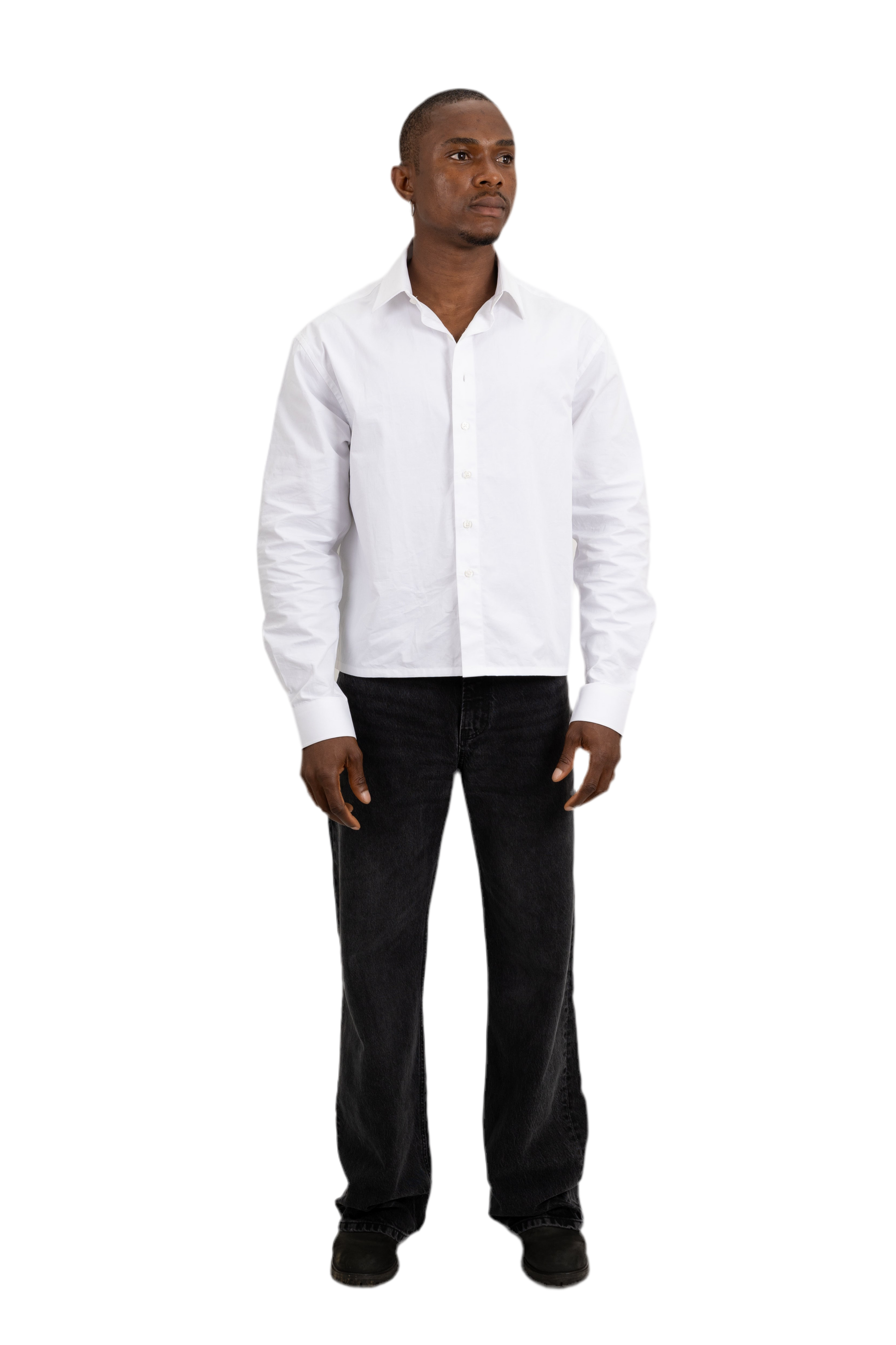 Our striped digital printing shirt with a more cropped contemporary body. The shirt is 100% cotton.